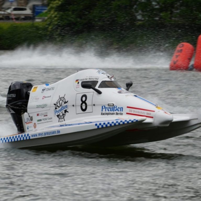 Hier beim Berliner Regattasport Verein e.V. sind wir stolz darauf, Euch Einblicke in diese Rennbootserie zu bieten. Die Boote sind Spezialanfertigungen, die ein Höchtsmaß an Sicherheit für die Fahrer und die Zuschauer bieten. Sie sind alle nach demselben Standard gebaut worden. Das bedeutet, alle Fahrer haben dieselben Chancen. Der Antrieb erfolgt über Serienmotoren mit identischer Leistung, die mit E-Fuel betrieben werden können und dann CO2 neutral und lärmreduziert sind. Die Serie steht vor allem für den Nachwuchs zur Verfügung - diese Boote kann man bereits mit 14 Jahren fahren.